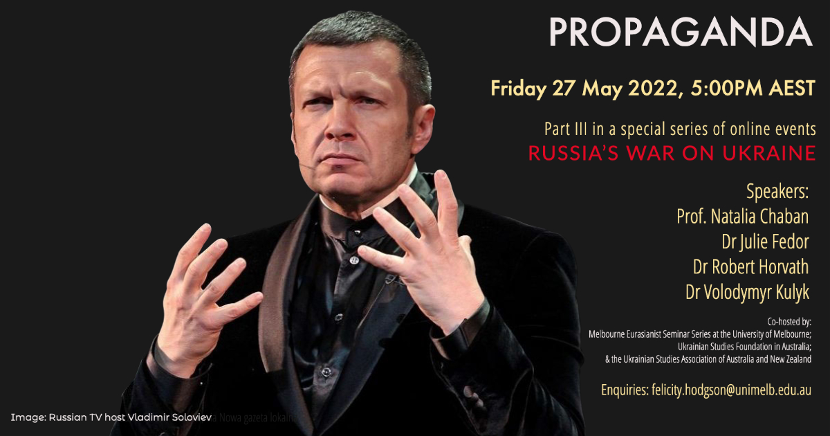 Jointly with the Melbourne Eurasianist Seminar Series at the University of Melbourne and the Ukrainian Studies Foundation in Australia, the Ukrainian Studies Association of Australia will co-host a series of six online events titled “Russia’s War on Ukraine.”