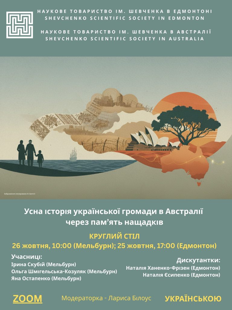Наукове товариство ім. Шевченка в Едмонтоні (Канада) та Наукове товариство ім. Шевченка в Австралії запрошують на спільний круглий стіл, присвячений усній історії українців в Австралії та збереженню пам’яті про покоління еміграції після Другої світової війни.